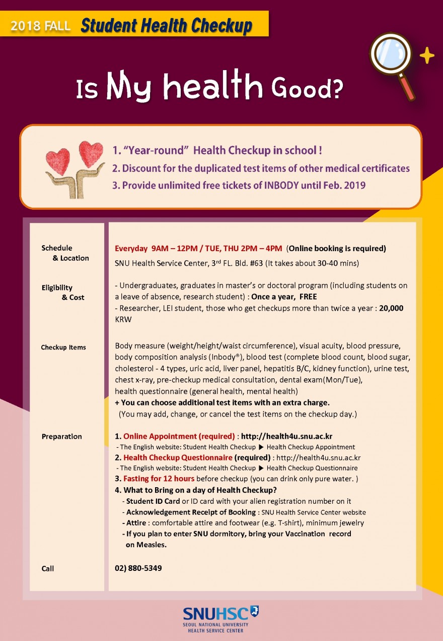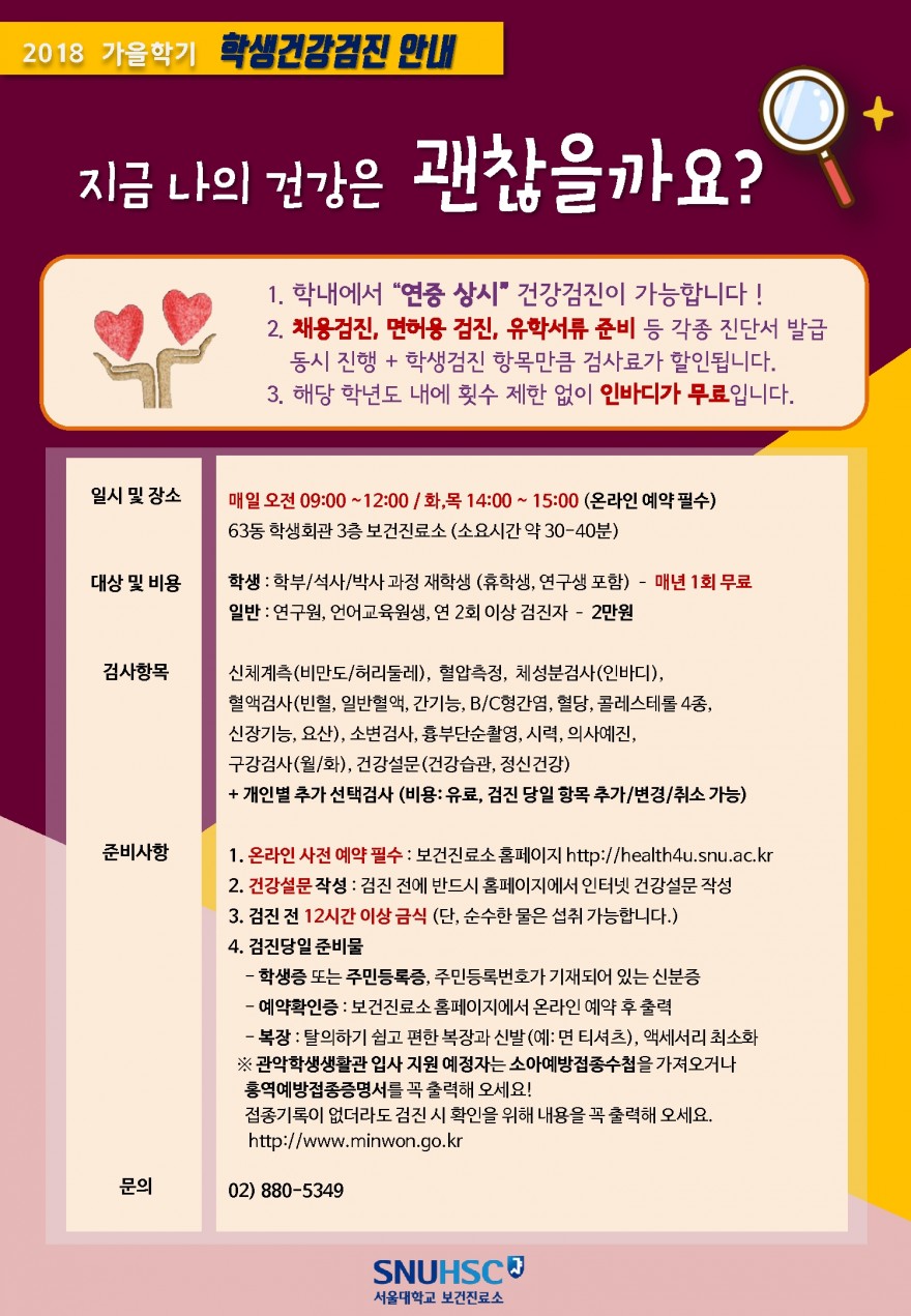 [공지]2018년 가을 학생건강검진 안내 > Official Notice